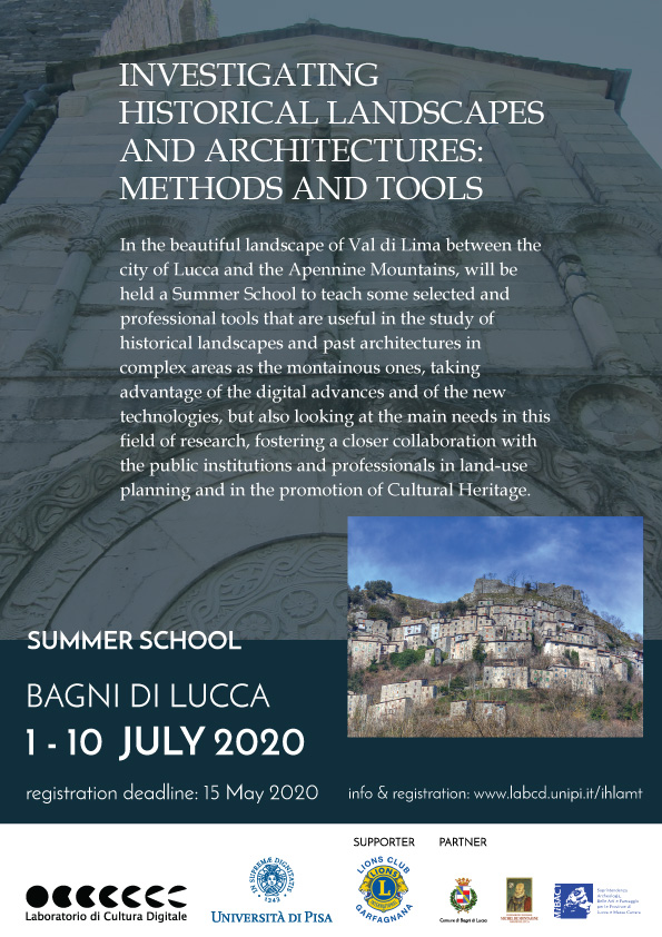 In the beautiful landscape of Val di Lima (between the city of Lucca and the Apennine Mountains), will be held a Summer School to teach some selected and professional tools that are useful in the study of historical landscapes and past architectures in complex areas as the mountainous ones, taking advantage of the digital advances and of the new technologies, but also looking at the main needs in this field of research, fostering a closer collaboration with the public institutions and professionals in land-use planning and in the promotion of Cultural Heritage.